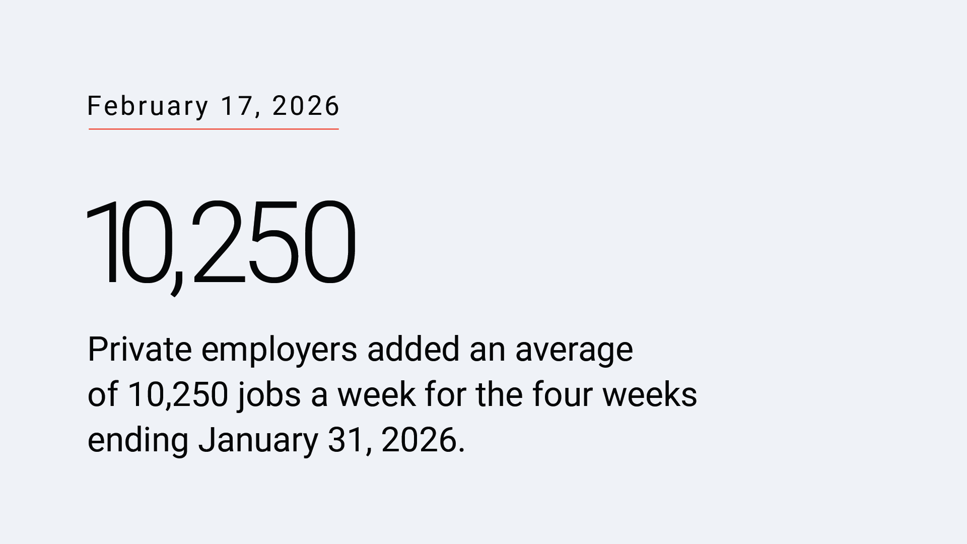 For the four weeks ending January 31, 2026, private employers added an average of 10,250 jobs a week. It was the third-straight week of strengthening job gains. These numbers are preliminary and could change as new data is added. Download this week’s NER Pulse data.